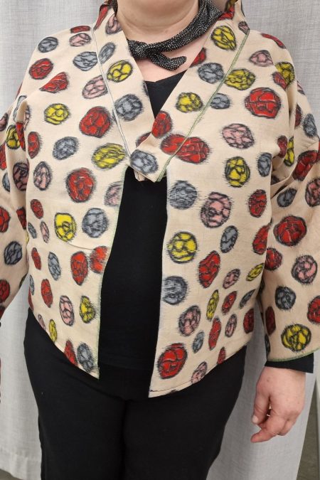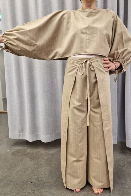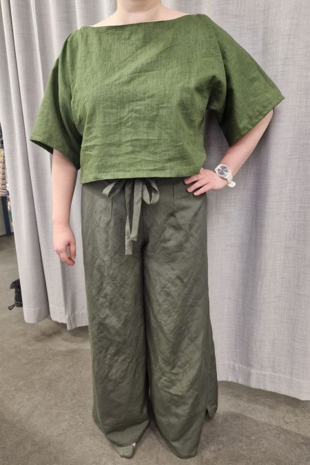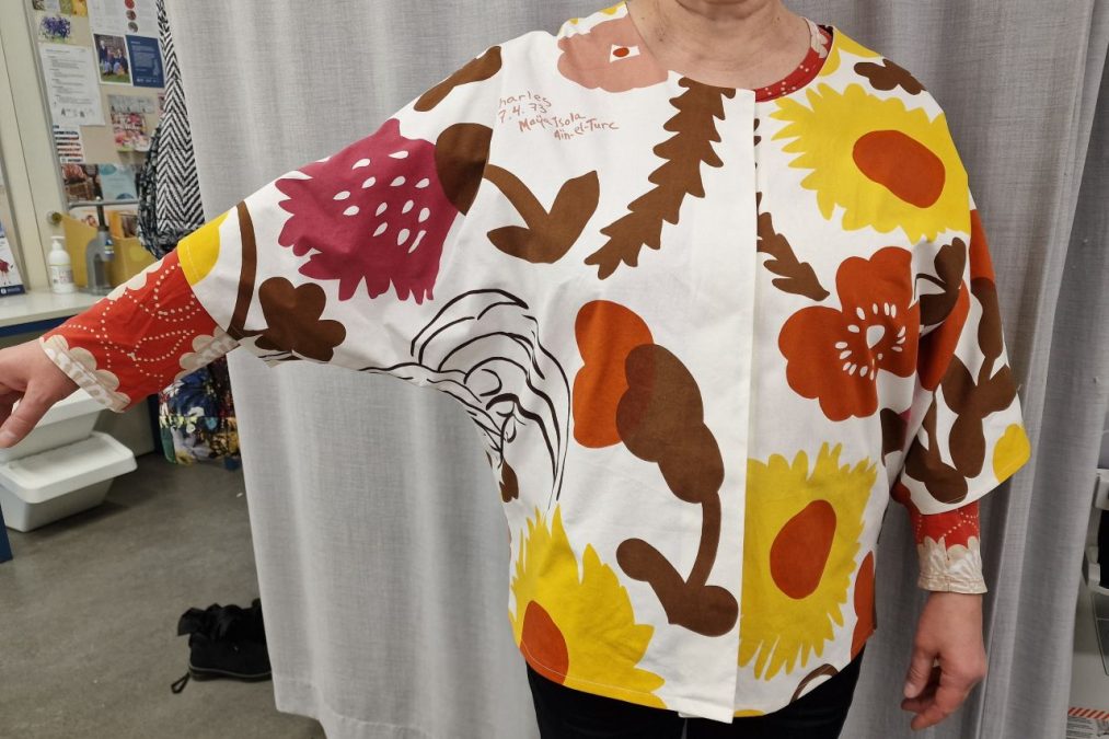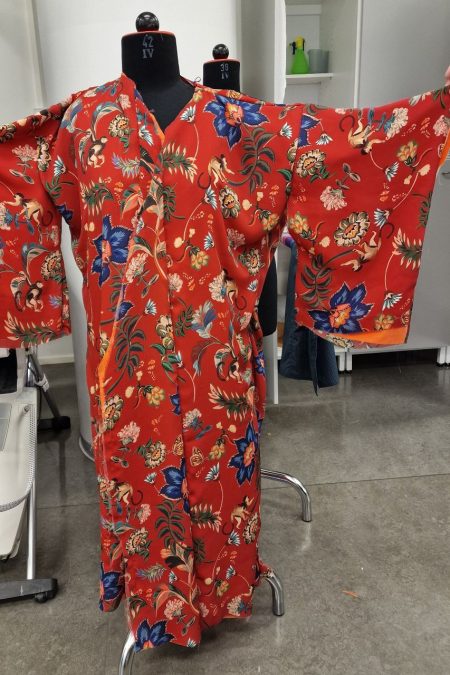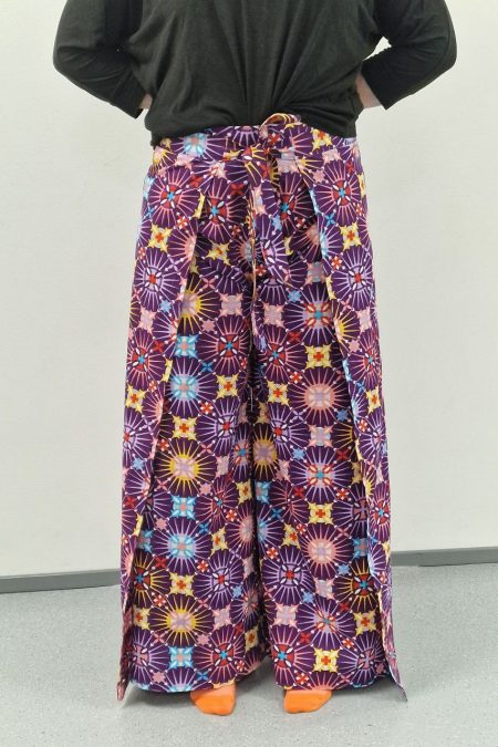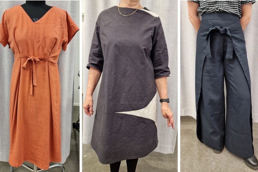 Kerrospukeutuminen on japanilaisessa pukeutumisessa avainasemassa. Viikonlopun mittaisella kurssilla emme toki ehtineet ihan kerrospukeutumiseen asti, mutta asukokonaisuuden sai moni aikaan. Opiskelijat ompelivat töitä uusista materiaaleista, mutta myös kierrätyskankaista ja kodin tekstiileistä. Kaavoja kopioitiin japanilaisista kirjoista ja opettajan kaavoista sekä tehtiin itse omien mittojen mukaan. Kuvat ovat kahdelta eri kurssilta.