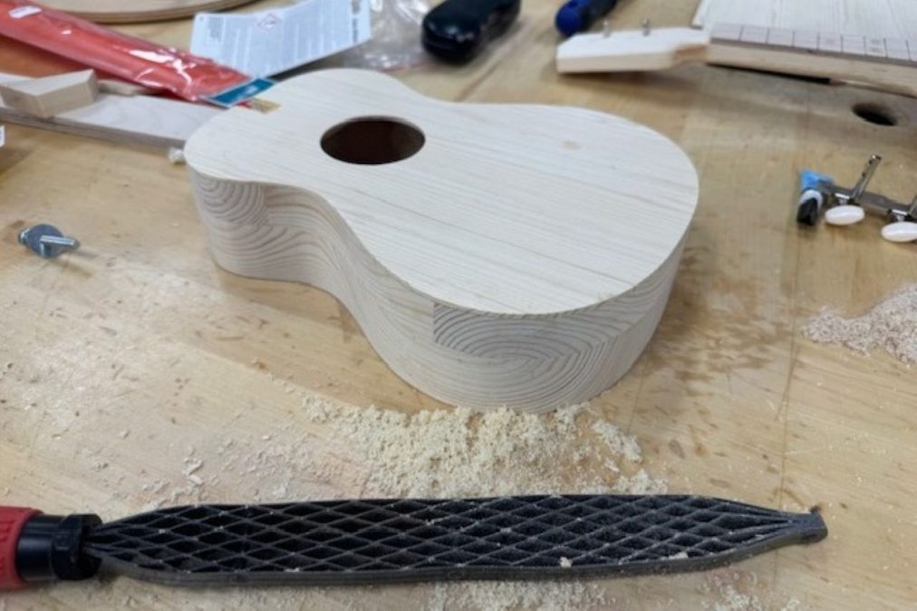 Keskiviikkoiltaisin Kalasataman peruskoulussa on kokoontunut ukulelen rakennuksen ryhmä. Ukulele on Havaijilainen perinnesoitin, jota on helppo soittaa. Mutta onko se helppo rakentaa? Ei mikäli sinua opastaa soitinrakennuksen vankka ammattilainen. ”Tarkoituksena oli pitää kurssi, jossa aloittelija voi tehdä toimivan soittimen rautakaupasta saatavasta materiaalista”: kertoo kurssin opettaja Christian Lindblad.